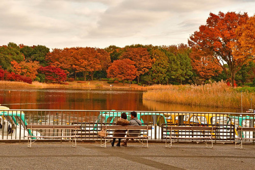 水鳥の池周辺の紅葉が晩秋を感じさせてくれる。