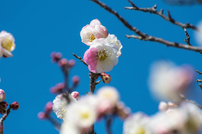 枝沿いに咲くまさにこれが梅の咲き方って感じ。