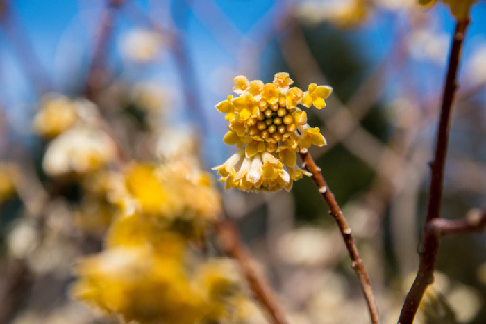 黄色の正体はこのサンシュ、ミズキ科。別名春黄金(はるこがねばな)と言われるように、黄金色の花。