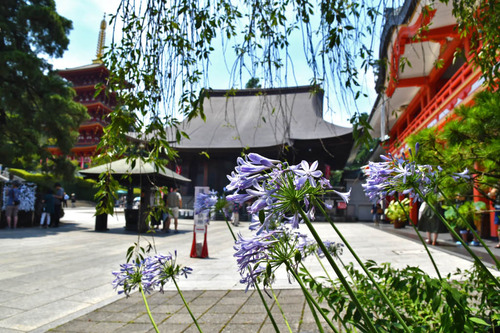 五重塔が見えないぐらい咲いている。河津桜はソメイヨシノよりも桃色が濃いね。
