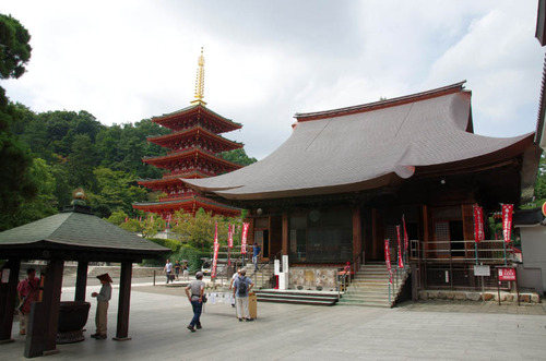 五重塔の横、大師堂の入り口で咲くトサミズキ(土佐水木)、マンサク科。見頃だ。
