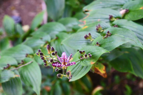 この時期の日本庭園で咲く花といえばこのシュウメイギク(秋明菊)、キンポウゲ科。高幡不動尊は白い花だけど、ここの花は濃いピンク色。 別名がキブネギク(貴船菊)、これは京都の貴船地方で多く咲いたことが由来だそうだ。もう少しすると彼岸花やホトトギスが咲き始めるだろう。