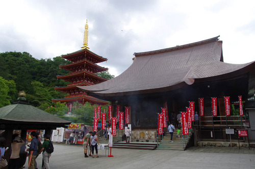 高幡不動尊の境内。天気も良くこの時期にしては暖かだったので参拝者も多い。今年は菊まつりは中止だけど不動堂前にだけ菊が飾られている。