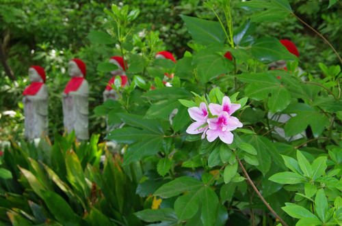 遠くから見ると紅色だけだったが、近寄って見ると白色の花も咲いている。