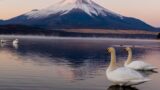支笏湖と風不死岳(ふっぷしだけ)。光に照らされることで「支笏湖ブルー」と言われる青色の輝きを放つ湖だけど、雲が出て来てしまっていまひとつだった。