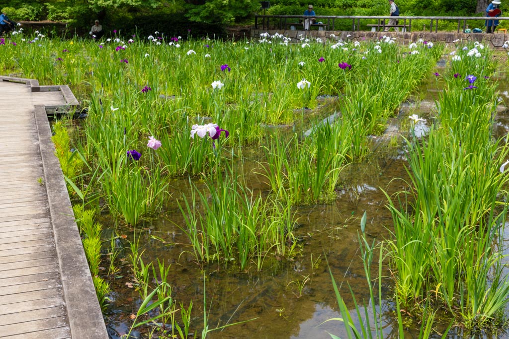 日本庭園のハナショウブは花木園菖蒲田よりも咲き方が進んでいる感じ。