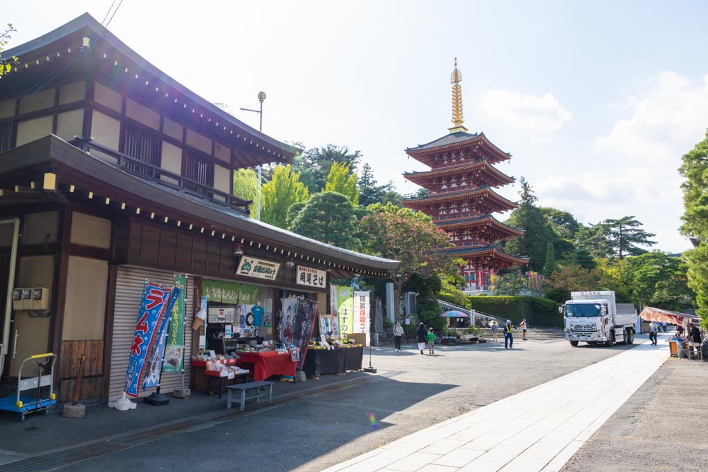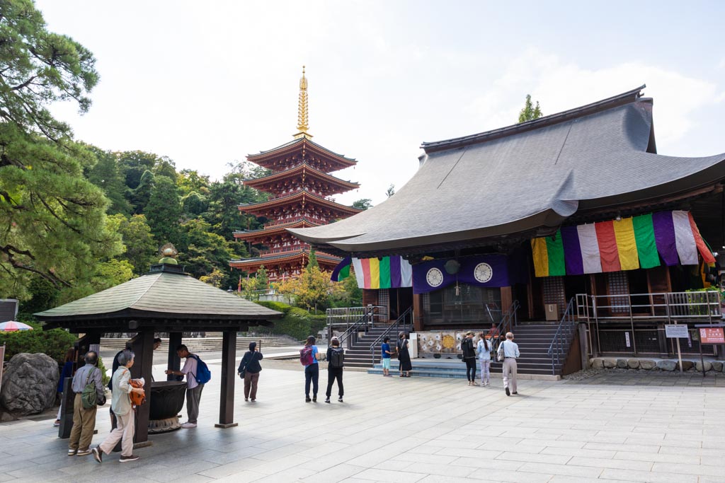 高幡不動尊の境内の参拝者。猛暑の時はほとんど参拝者を見かけなかったけど。