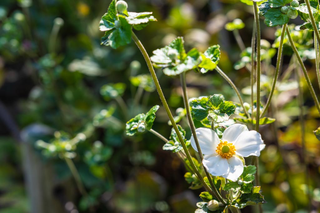 弁天池の周りでようやくシュウメイギク(秋明菊)、キンポウゲ科が咲き始めた。