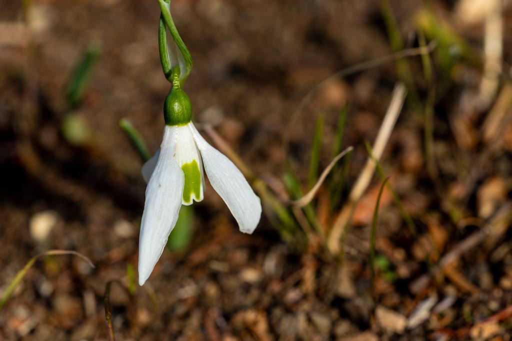 姿も名前も似ている花にスノーフレーク(鈴蘭水仙)、ヒガンバナ科があるけど、こちらは完全に春になる頃に咲く。