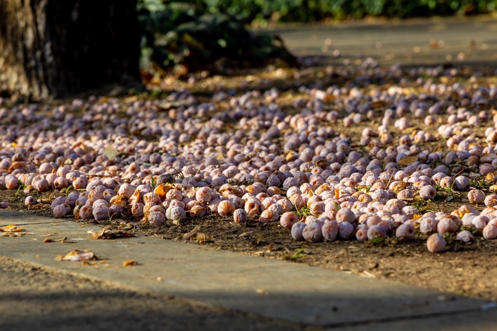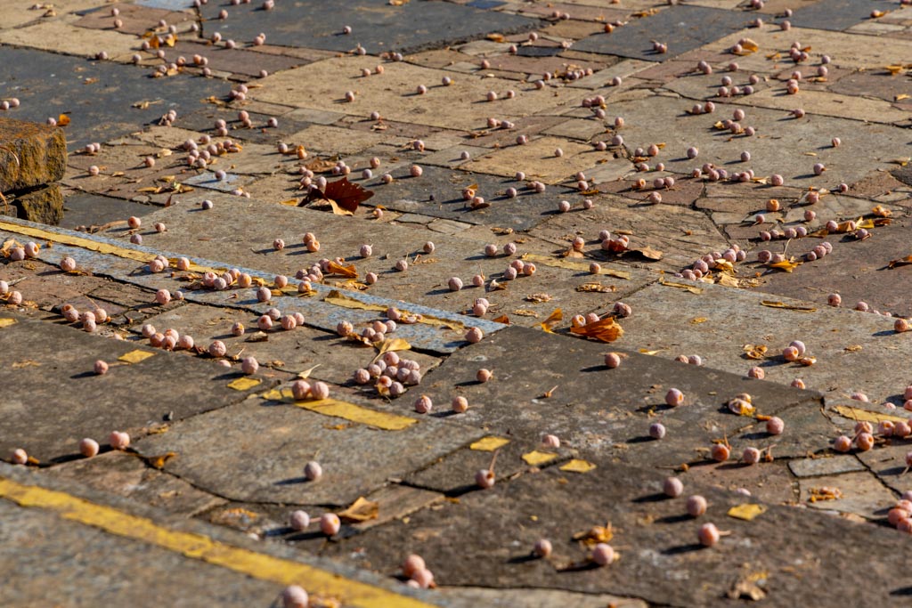 イチョウ並木の足元には銀杏がまだたくさん落ちている。