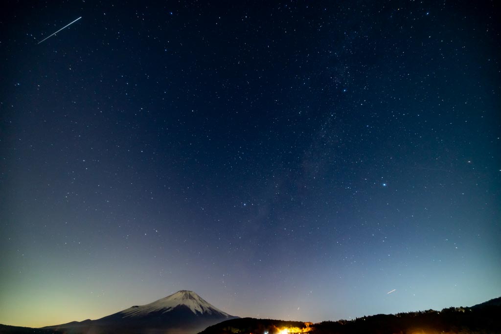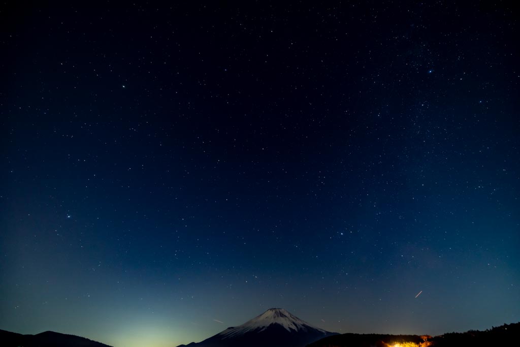 せっかく富士山が見える場所だし、天の川の位置やこの時期の星座もよくわかってないので、純粋な星空だけでは面白くないので景色(富士山)も入れた星景写真にした。