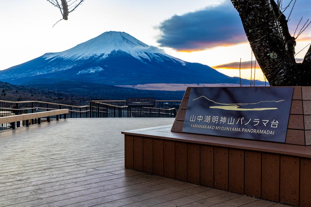 正式名称は山中湖明神山パノラマ台、富士山と山中湖が同時に一望できる絶景スポット。