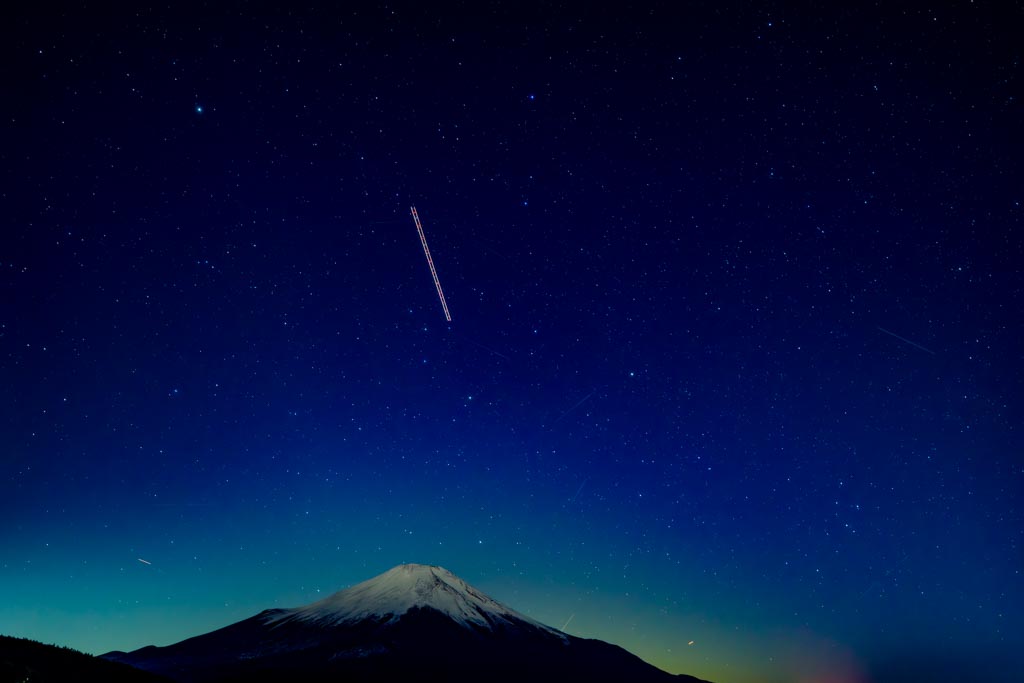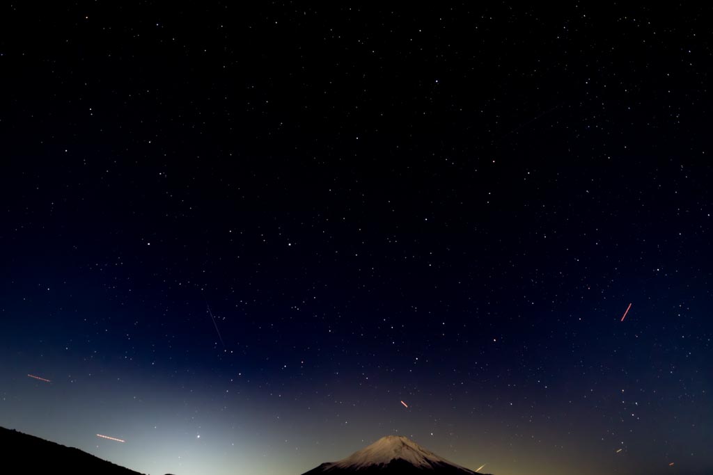 富士山を入れないと絵にならないね。星がたくさん見えるのはわかるけど、どのような星・星座があるかわからず、まだまだ修行が必要。せめて天の川がきれいに見える時期・時刻ならば少しは絵になるんだけれど・・・