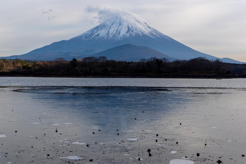 逆さ子抱き富士を見たかったけど、湖面が凍っていたので今ひとつだった。