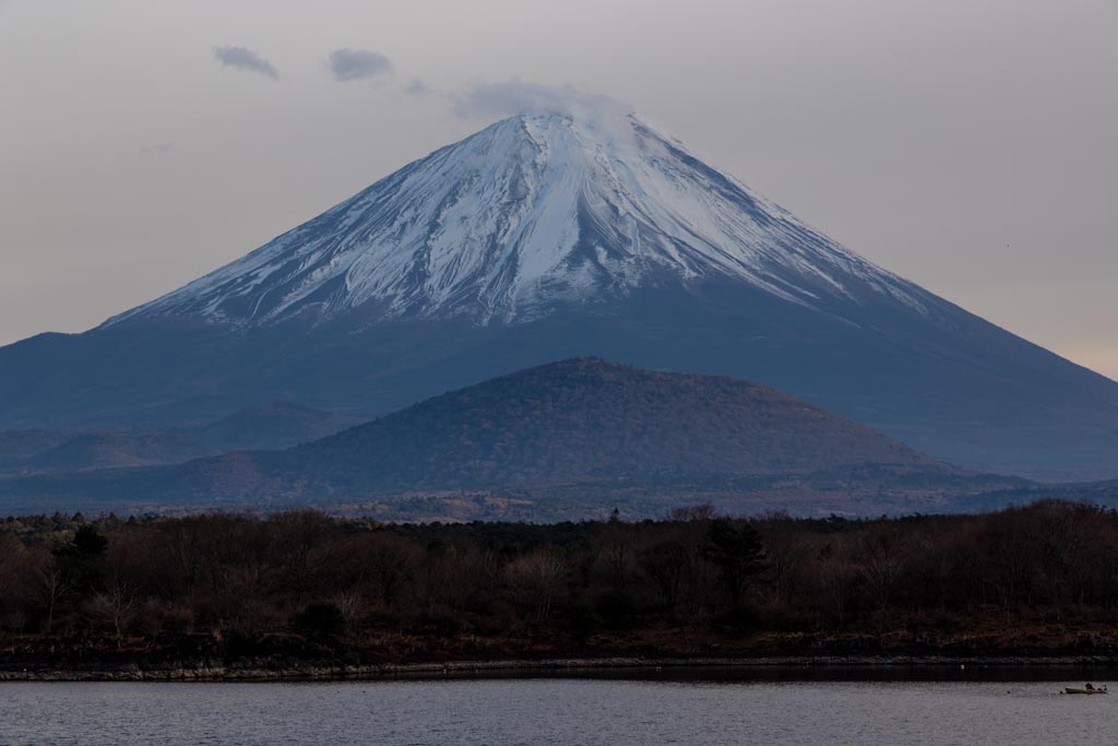 富士五湖で一番面積が小さい湖の精進湖からの富士山。
