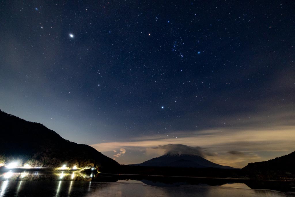 すでに富士山周辺に雲がかかっているけど、だんだんとここの空にも雲が広がってきて到着後30分ほどで星が見えなくなったのが残念だった。
