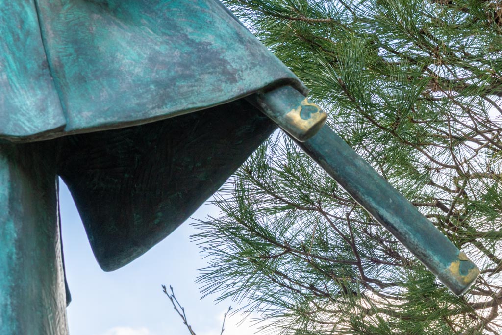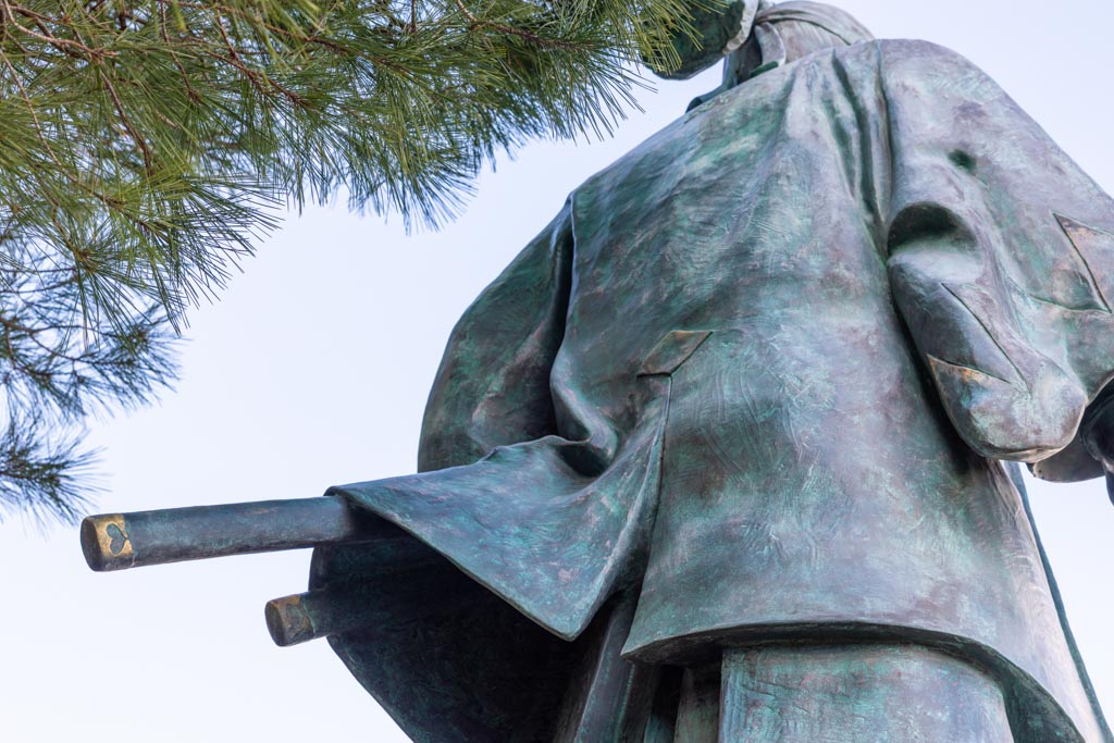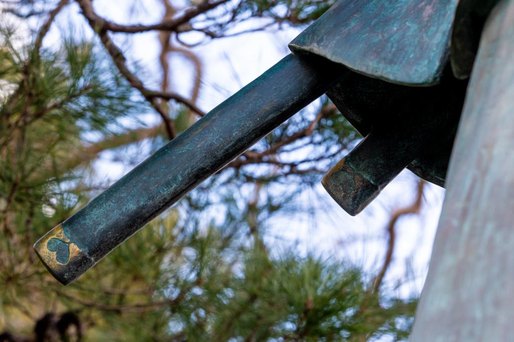 ネットでこの「和泉守兼定」の鞘尻(鐺:こじり)や鐔(つば)にハートマークがあることを読んだので、改めて銅像の刀を見てみたら確かにハートマークがあった。