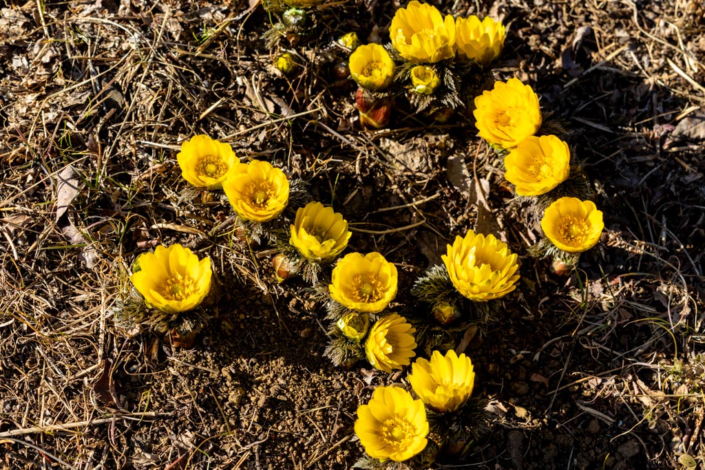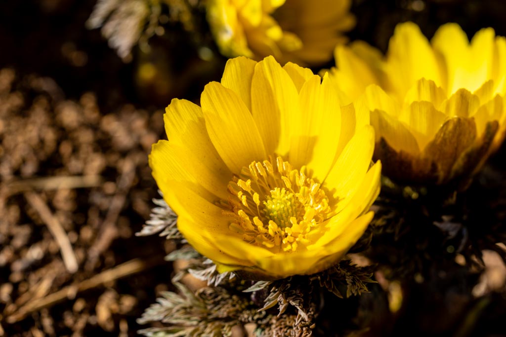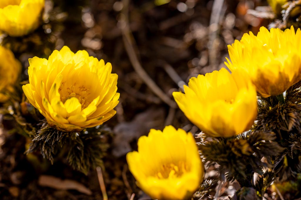 福寿草は幸福の福と長寿の寿とおめでたい名前で縁起物として正月飾りなどにも飾り付けされる。