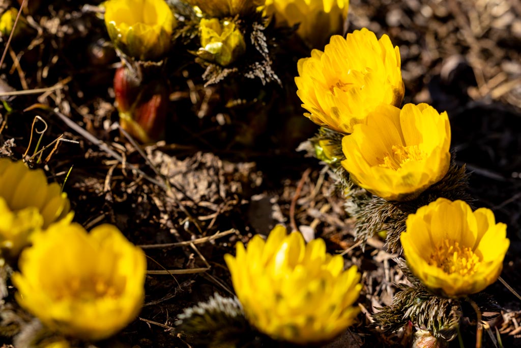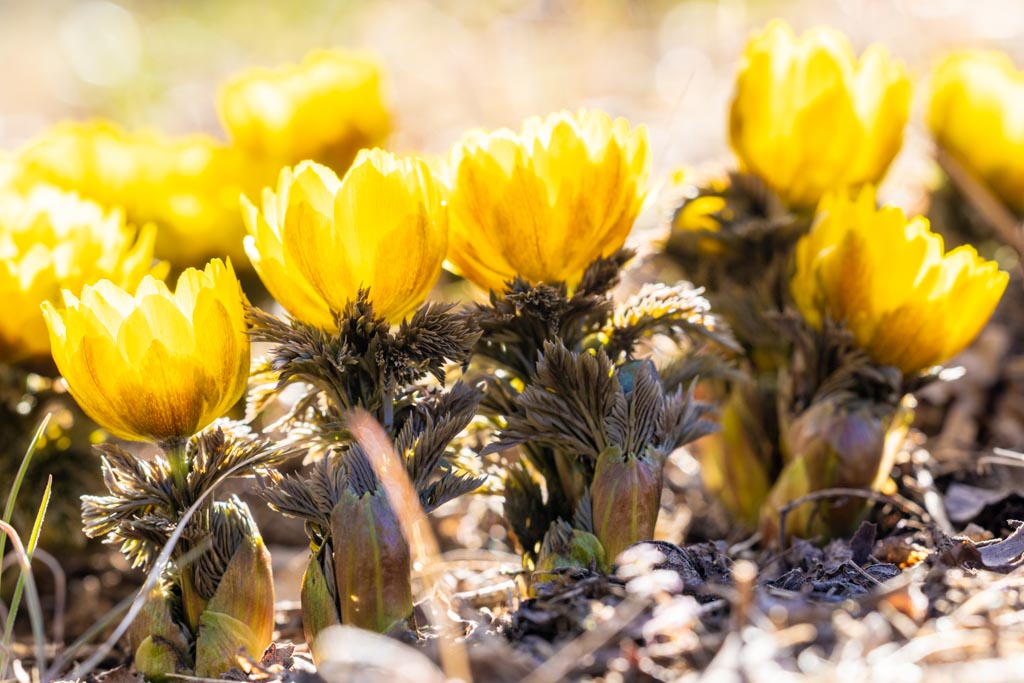 早春にまず花を咲かせて、そのあと茎が伸びて葉が出てくる。梅の花が咲いた木の足元に黄金色の花が咲いて早春を告げている。暦の上(2月4日が立春)ではもうすぐ春。