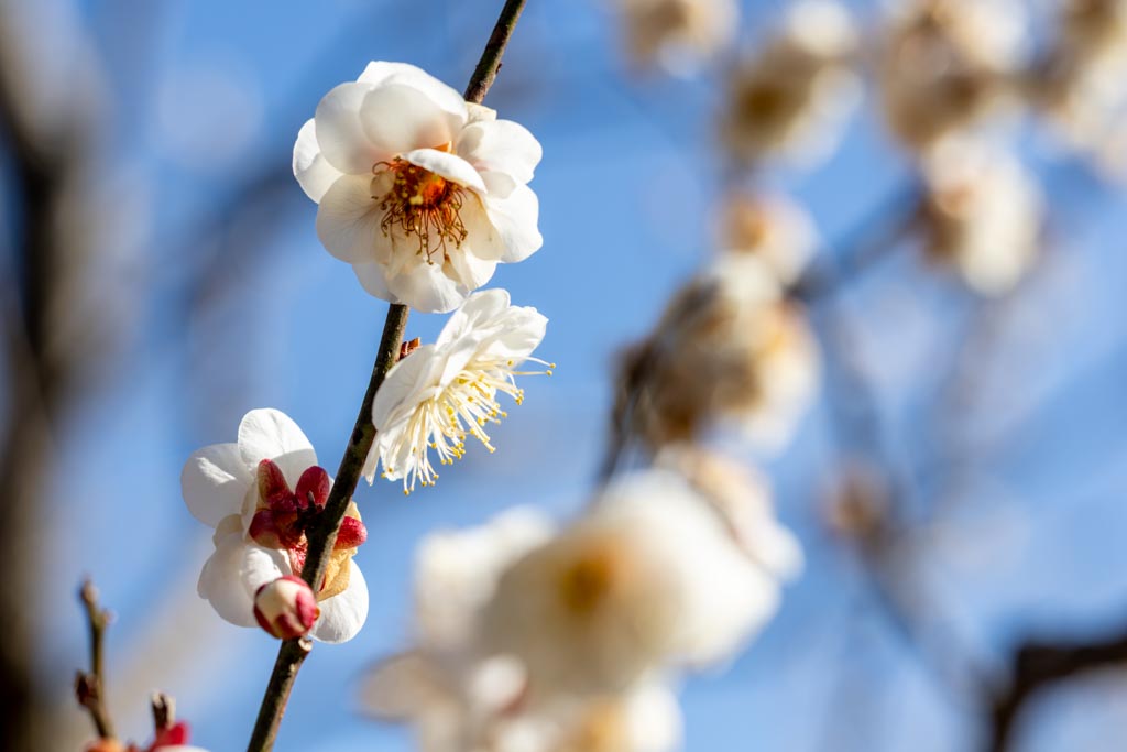前回(1/15)来園した以後、花木園梅園の梅が続々と咲き始めていた。これは道知辺(ミチシルベ)。