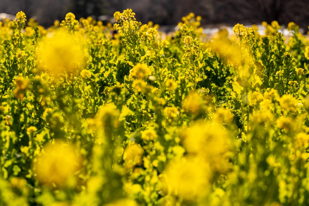東花畑は早咲きの菜の花。年明けから開花して見頃が続いている。