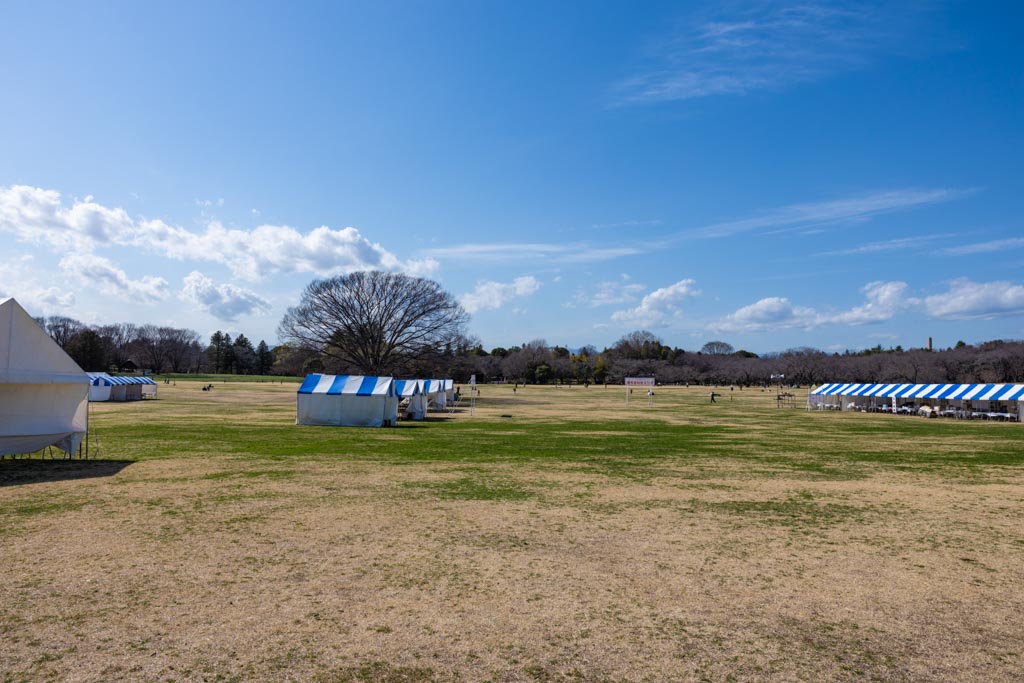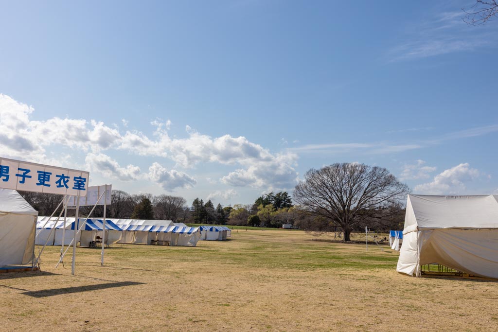 大会本部や更衣室などの仮設テントが設置されていている。