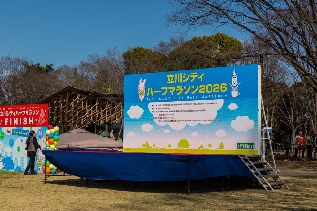 翌日の3月8日に開催される立川シティハーフマラソン2026の準備がみんなの原っぱで進んでいた。