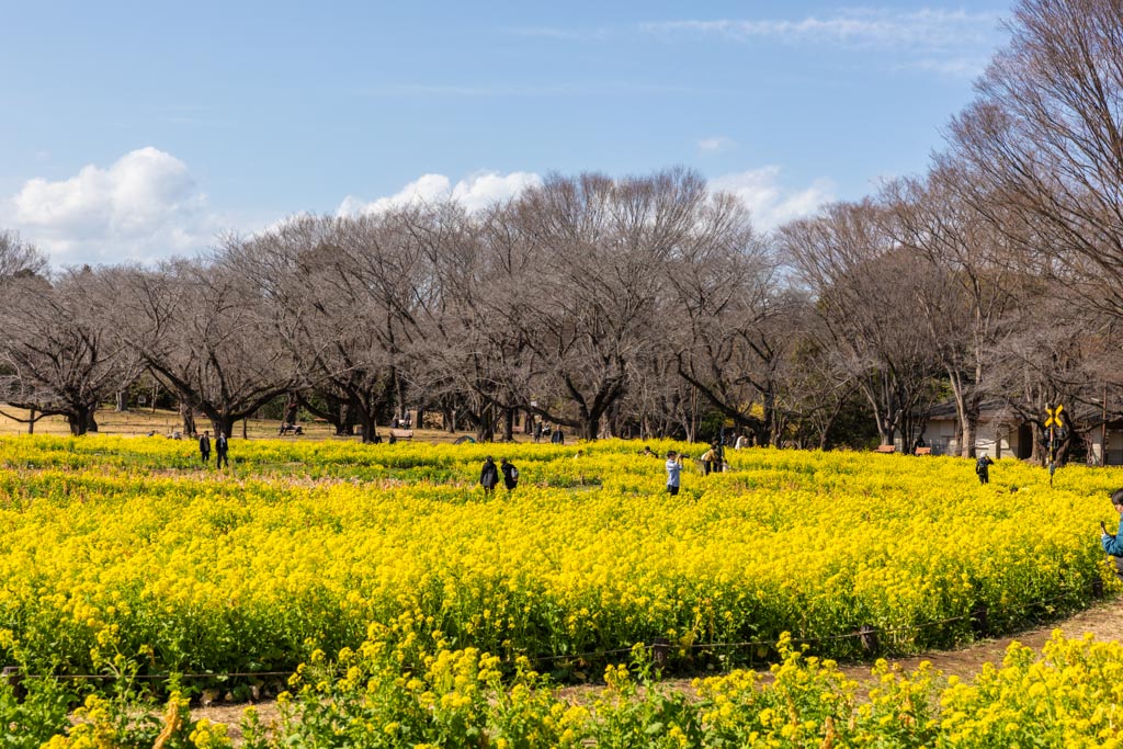 奥に見えるソメイヨシノ(桜の園)はまだこれからだけど、この状況だと菜の花とのコラボが楽しめるかもしれない。