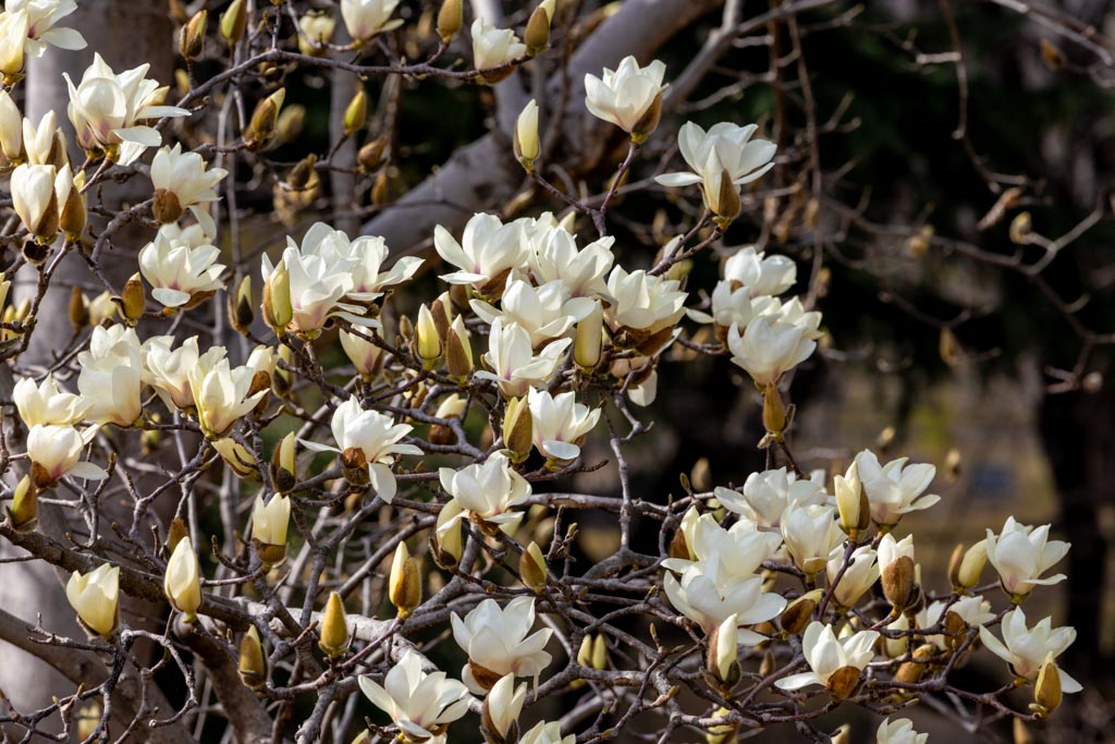 ミモザの近くでさいていた、ハクモクレン(白木蓮)、モクレン科。