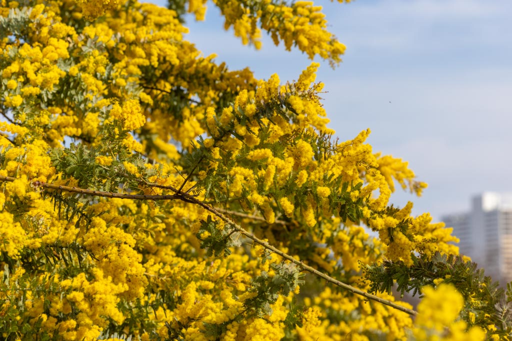 国際女性デー(3月8日)はイタリアでは「ミモザの日」と呼ばれ、男性から女性へ感謝を込めてミモザを贈る習慣があるそうだ。ヨーロッパ原産かと思ったらオーストラリアが原産でオーストラリアの国の花(ゴールデン・ワトル)にもなっているそうだ。