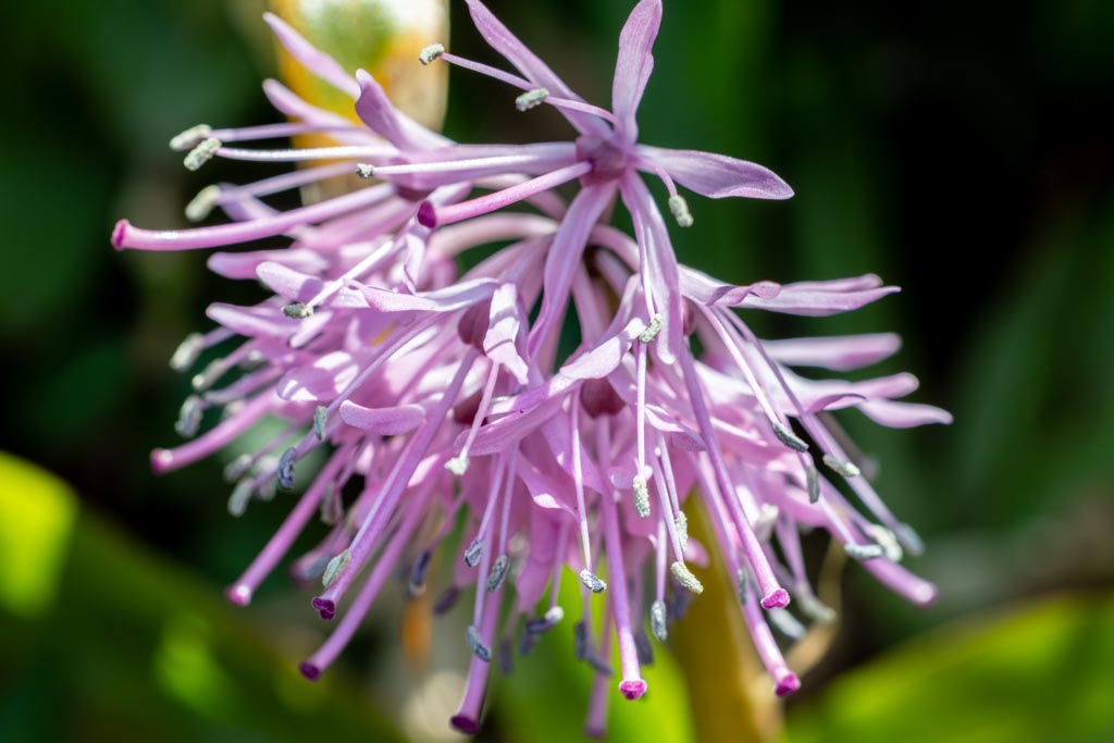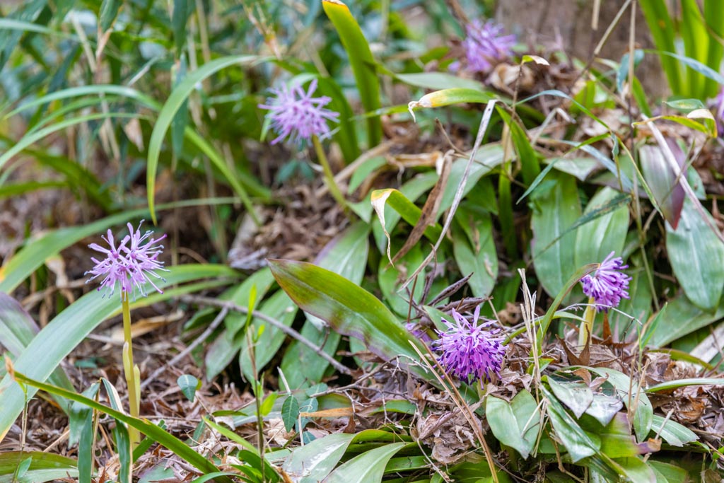 ここの花は上品な明るい紫色だけど、名前の由来は花をショウジョウ(猩々)という酒を好み赤ら顔をした中国の伝説上の生物の赤い頭の毛に見立てて、さらに根元から生える葉が重なり合う様子をそのハカマ(袴)に見立てた名前。