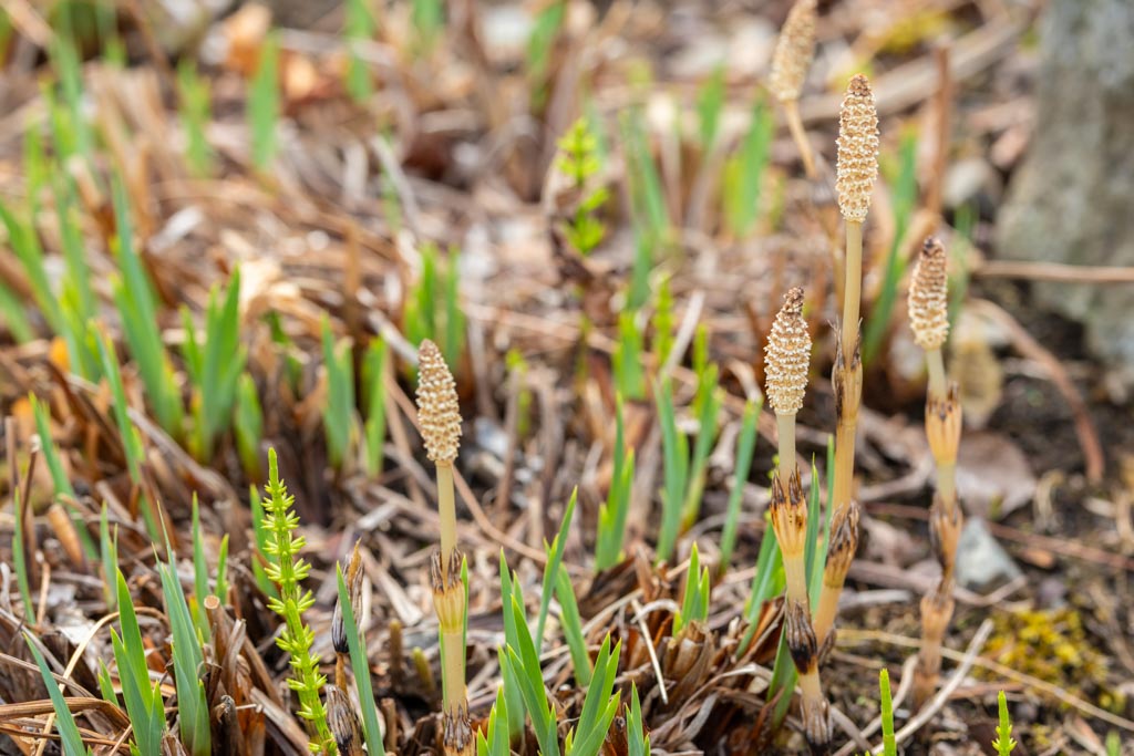 ツクシはスギナの「胞子茎」、もうここはスギナだらけになっている。