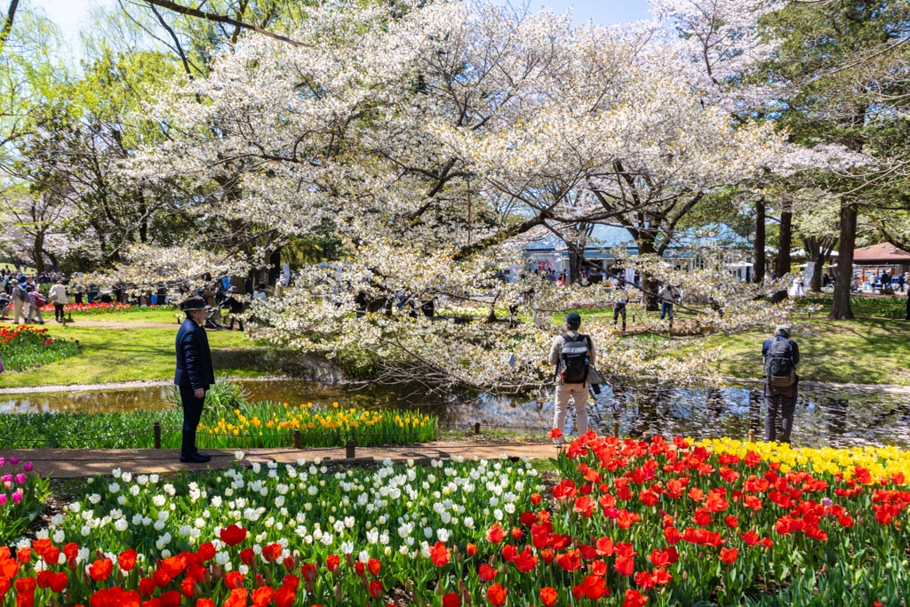 チューリップ・ガーデンのチューリップはまだ咲きはじめだったけど、ここは桜とチューリップが楽しめる場所。