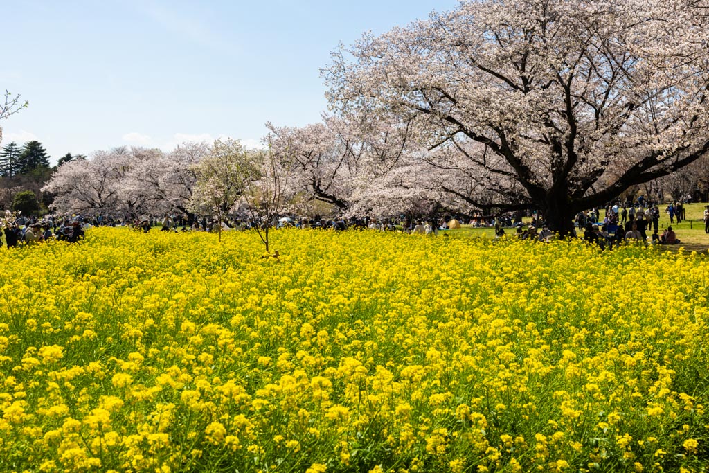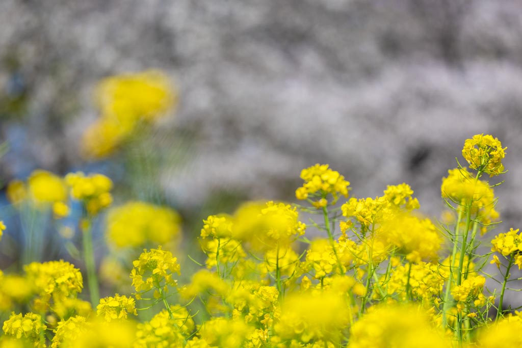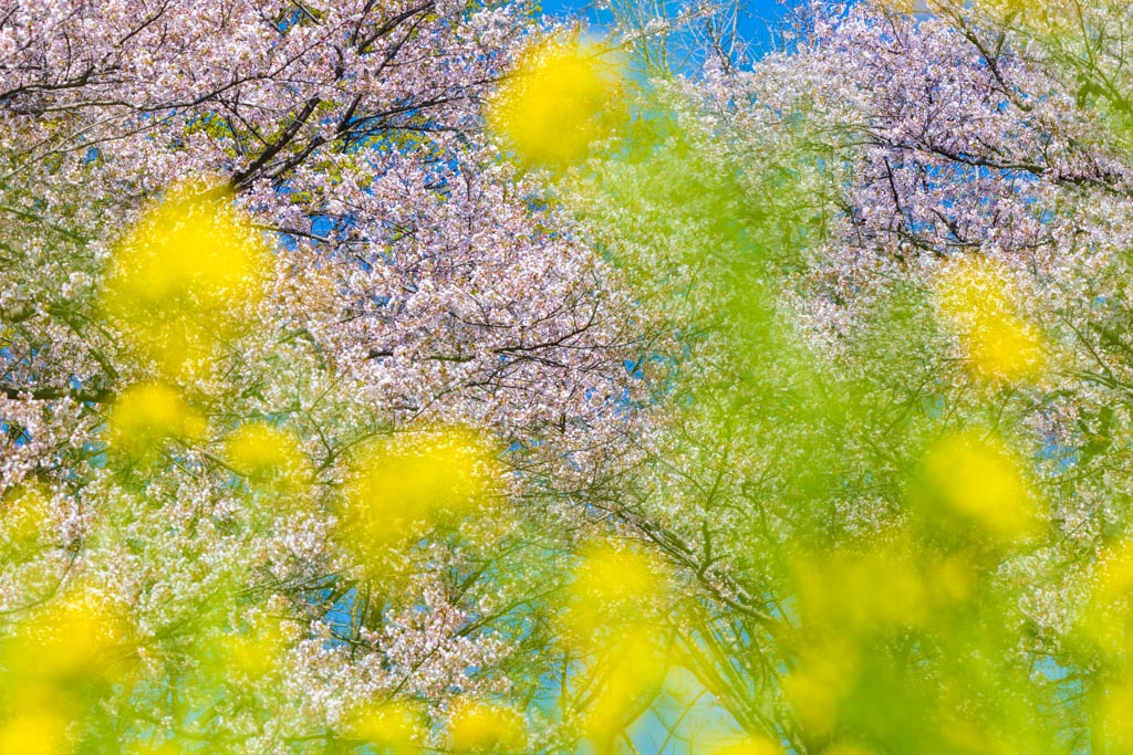 きれいな青空の日に薄ピンク色のソメイヨシノと黄色の菜の花を見ることができて最高の気分だった。