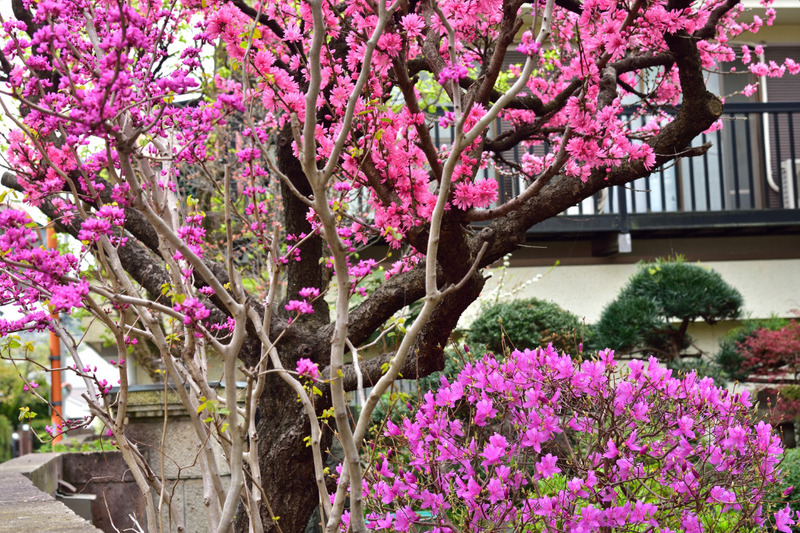 高幡不動尊は比較的山の中の散策路だけど、こちらは日本庭園の新緑にあじさいがとけ込んで、高幡不動尊とは一味違ったいい味わい