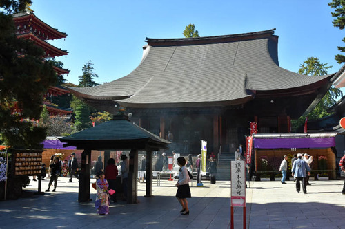 高幡不動尊は、良い天気なのにそれほど人出もなく、七五三のお参りの人が少しだけ。下写真でもわかるように、来週から始まる菊祭りの準備がすすんでる