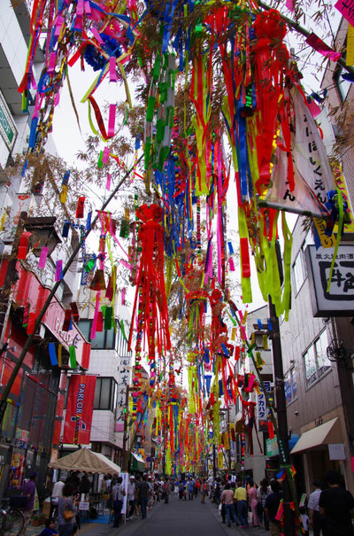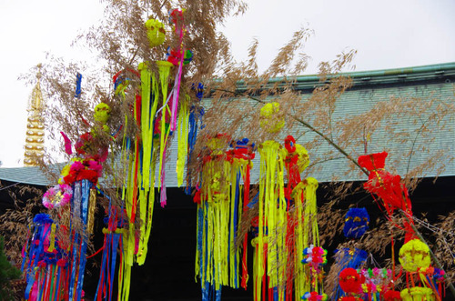京王線高幡不動駅から高幡不動尊に通じる参道の七夕飾り。
