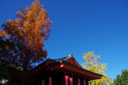高幡不動尊の駐車場には盆踊りの準備がしてあった。この時期らしい光景。