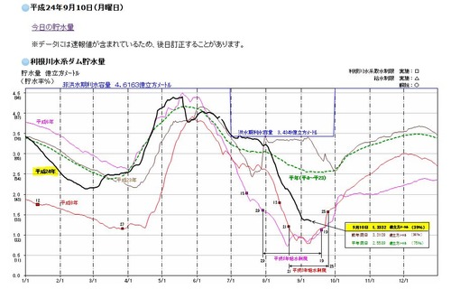 下は東京都水道局のページから引用。利根川水系ダム貯水量の推移⇒ここ