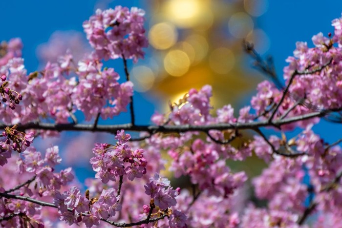 白梅、紅梅、そして黄色はサンシュ、ミズキ科。
