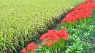 近所の田んぼで咲いている彼岸花。毎年ここはきれいに彼岸花が咲くが、今日ちょうど見頃になっていた。この1週間は毎日雨が降っていて、この日も早朝に降った雨でちょっとだけしずくがついている。写真を撮っていると、だんだんと雲行きが怪しくなりいまにも...