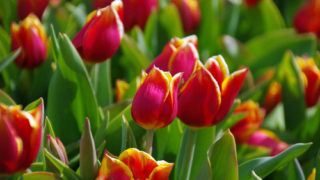 2月の昭和記念公園の様子。12月に見頃を向かえるはずで育てられたアイスチューリップが寒波・低温の影響で遅れてようやく見頃に。赤に黄色い縁取りの花びらはキースネリスという品種。アイスチューリップは球根を冷蔵処理して寒いこの時期に咲くようにした...