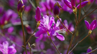京王百草園 京王百草園 ミツバツツジ 前回の続き、4月最初の京王百草園のミツバツツジの様子。ここにはたくさんのミツバツツジがあるけど、この日は数本が咲き始めていた。枝先に3枚葉を出すのが名前の由来だけどまだ葉は出ていない。ソメイヨシノと同じで葉が出る前に花が咲くから華やかに見え... 2011.04.09 京王百草園春の風物詩