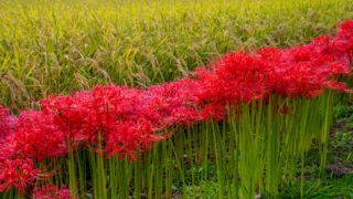 散歩写真 日本の秋の風景 稲穂と彼岸花 ここは近所の田んぼ。毎年、稲穂が頭を垂れ始める頃、彼岸花が咲く。田んぼのあぜ道に彼岸花を植えると球根の毒がモグラやネズミ除けになるそうだ。 この日はちょうどいいタイミングだと思って来たけれども、よく見ると稲穂に近い側の彼岸花は色が変わり始... 2019.10.04 散歩写真秋の風物詩