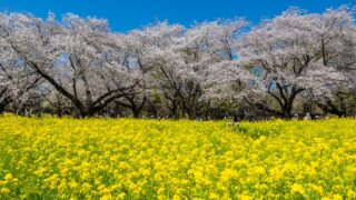 春の風物詩 昭和記念公園 桜満開・桜の園 2026.04.03 昭和記念公園の桜が見頃になり、きれいに晴れた日の続き。前回は旧桜の園だったけど今回は(新)桜の園。桜の園はみんなの原っぱの北側になる。下写真はみんなの原っぱ南花畑から桜の園を見たところ。 2026.04.06 春の風物詩昭和記念公園